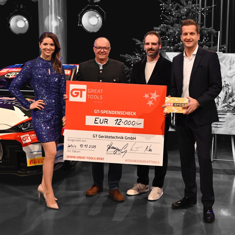 GT Gerätetechnik unterstützte die Aktion gemeinsam mit Raimund Baumschlager erneut und übergab einen Spendenscheck in Höhe von 12.000 €.